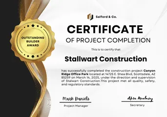 Certfificate of Project Completion